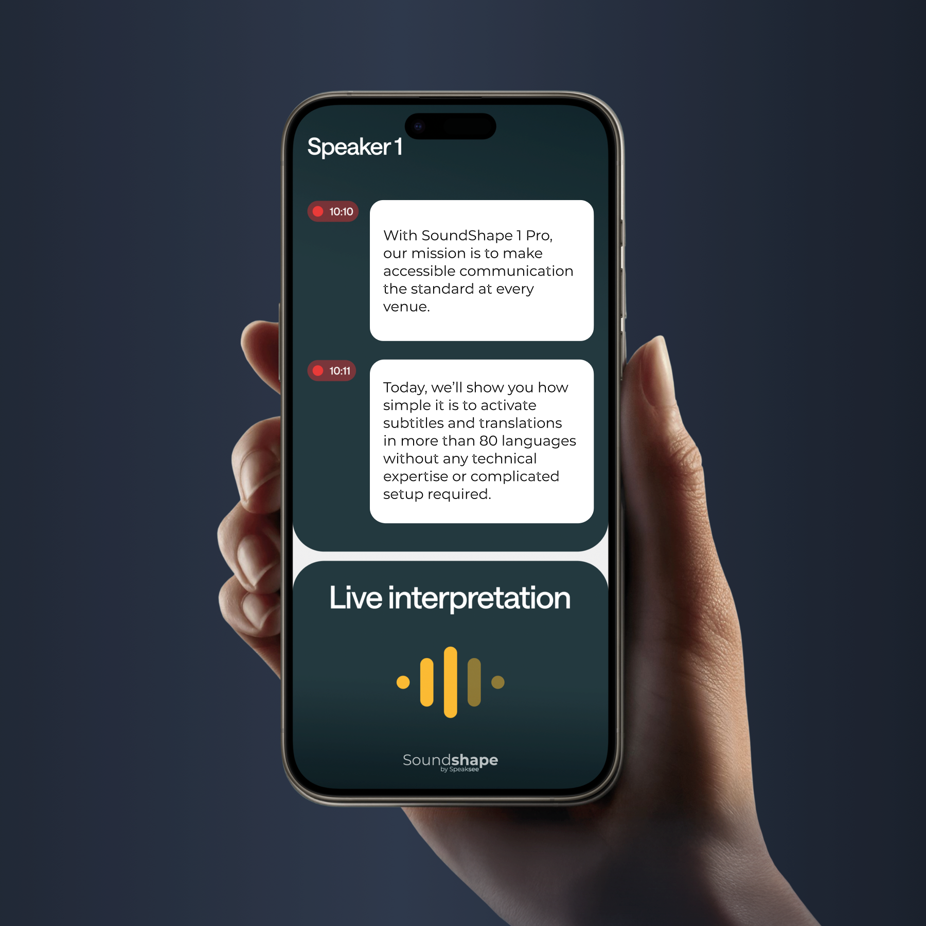 With Soundshape, meetings, lecture halls and public spaces become more inclusive. Colleagues can contribute equally, ideas are no longer lost in translation, and no one is left behind because of hearing or language barriers.